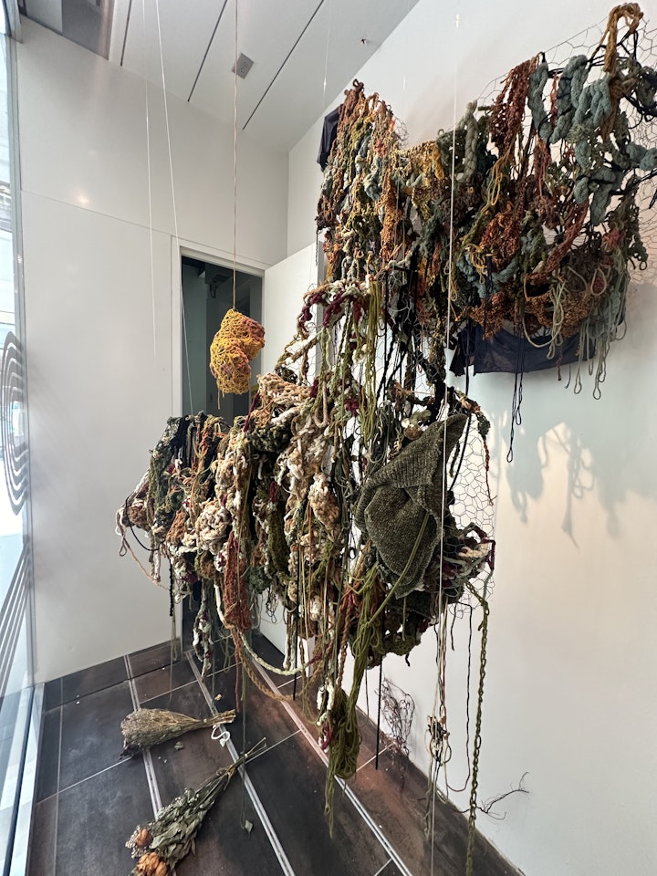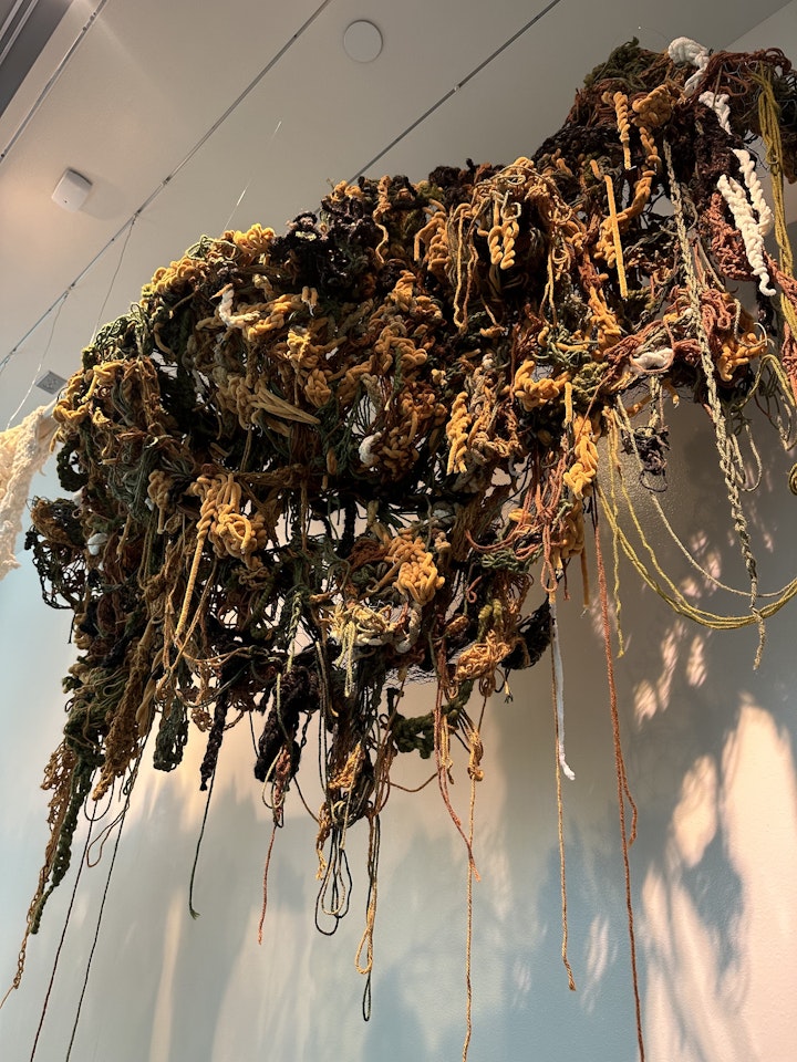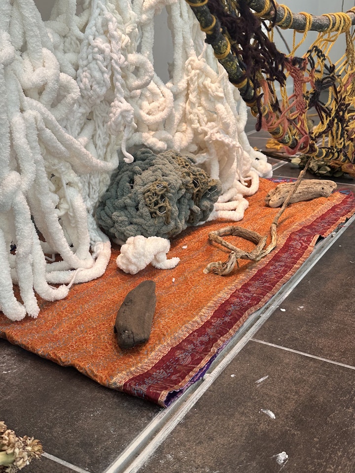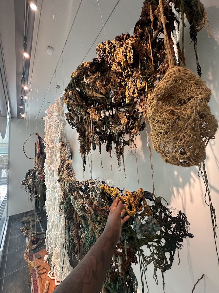 My work at large explores themes of desire, security, survival and transformation within the context of Black queer bodies. Convergence is a landscape visually represented through the suspended, dynamic interplay of weaving and blending tension, scale, and mirroring the complexities of the emotional, historical, and personal aspects of these themes. All of these landscapes were made in transitions and periods of emotional impermanence for them all to meet here on one plane. I intend for this work to show this convergence as an aspect of empowerment and agency, not victimhood.