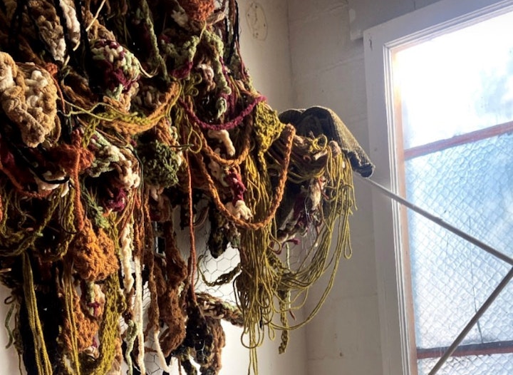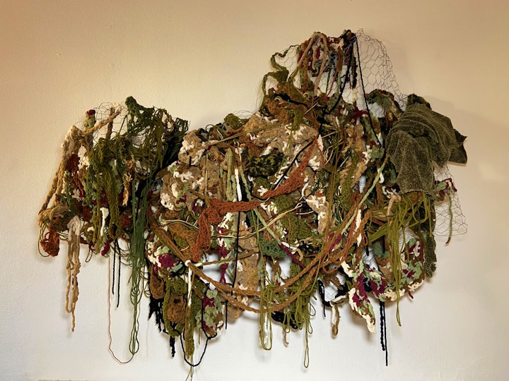 In Silently Violent, Haynes traverses the realm of limbo where friction finds its place in the spaces in-between. This intangible dance becomes a metaphor for black queer existence/survival, a teetering between an intergenerational archive of extinguished personhood and an earnest attempt to forge an entirely new sense of self. Haynes seeks to contribute to the visual narratives and mythologies that challenges viewers to engage in introspective dialogues about change, transformation, and resilience dissimilar to the predominantly archived spectacle of violence on bodies like their own. Through the embodiment of these fiber consumed pieces, each suspended in varying states of tension they describe the indescribable; an attempt to recall the assessments one makes in the face of their own history and evolution.