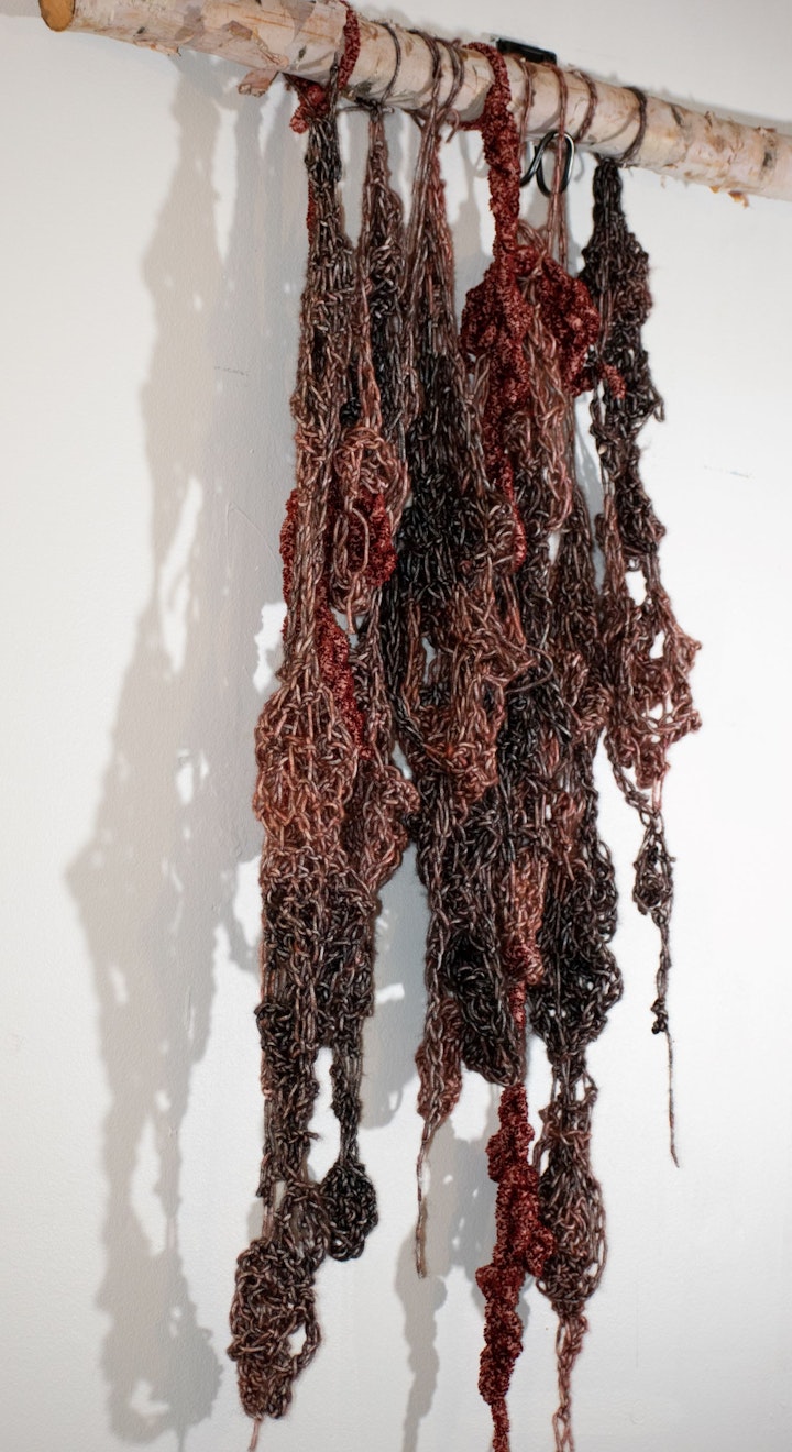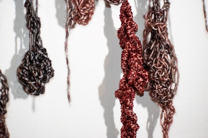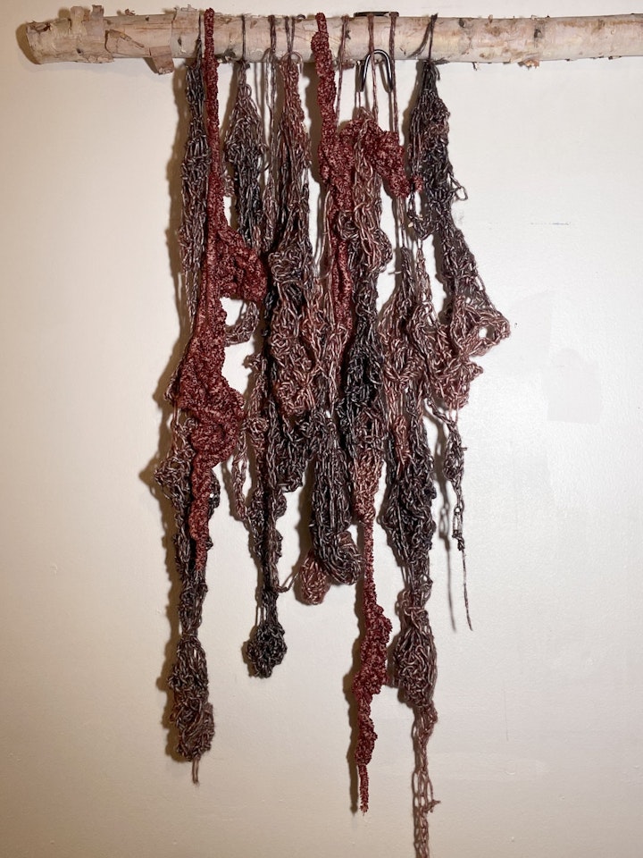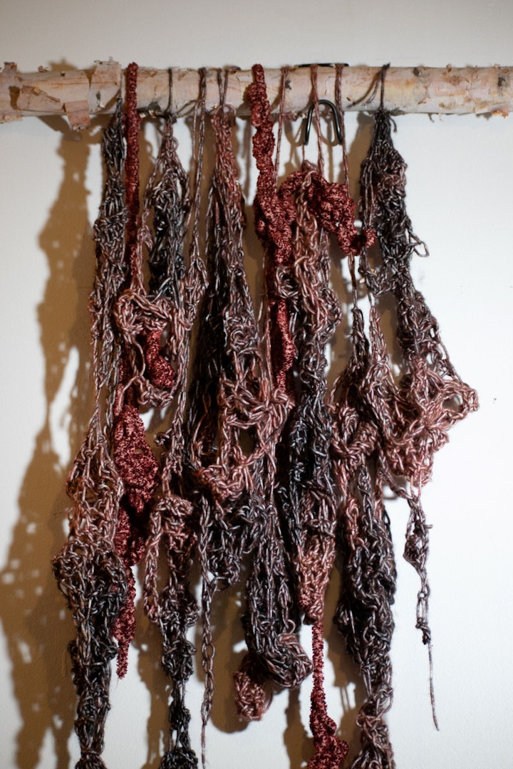 In Silently Violent, Haynes traverses the realm of limbo where friction finds its place in the spaces in-between. This intangible dance becomes a metaphor for black queer existence/survival, a teetering between an intergenerational archive of extinguished personhood and an earnest attempt to forge an entirely new sense of self. Haynes seeks to contribute to the visual narratives and mythologies that challenges viewers to engage in introspective dialogues about change, transformation, and resilience dissimilar to the predominantly archived spectacle of violence on bodies like their own. Through the embodiment of these fiber consumed pieces, each suspended in varying states of tension they describe the indescribable; an attempt to recall the assessments one makes in the face of their own history and evolution.